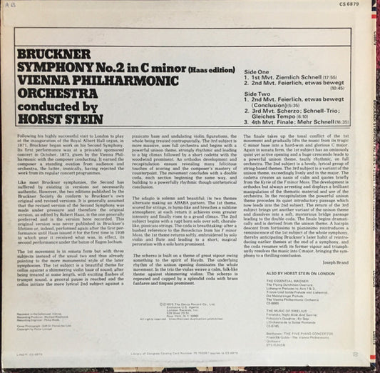 Anton Bruckner - Wiener Philharmoniker, Horst Stein - Symphony No. 2, 1975