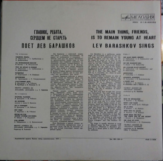 Лев Барашков - Поет Лев Барашков = Lev Barashkov Sings, 1977
