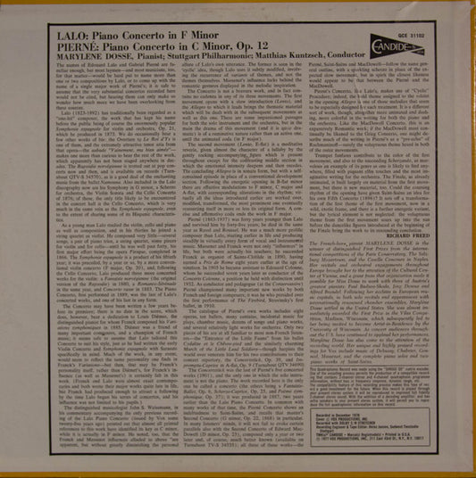 Gabriel Pierné, Édouard Lalo / Marylene Dosse, Stuttgarter Philharmoniker, Matthias Kuntzsch - Pierné: Piano Concerto In C Minor / Lalo: Piano Concerto In F Minor, 1977